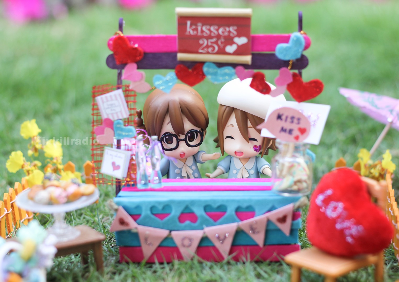 I made a Valentines themed Kissing booth for my Kyoto Animation Exclusive K-On chibi figures, Yui Hirasawa and Ritsu Tainaka. I want to set up a fun, Valentines-inspired outdoor photo shoot this year.