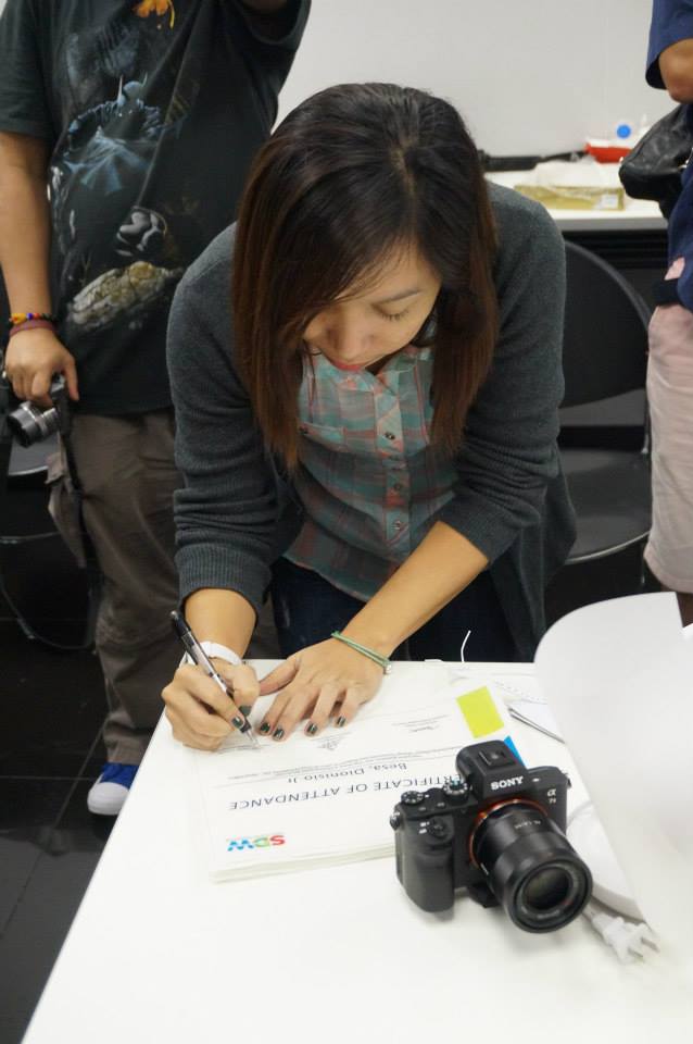 It was my first time conducting this training and I felt nervous and excited all the same time. Jv, Aby, and the rest of the Sony Philippines Digital Imaging group were very supportive of my work and helped me with the preparation as well. Not to mention, my boyfriend and my brother have helped me with all the things I needed for this workshop. My heartfelt thanks to those who have been a big part of it.