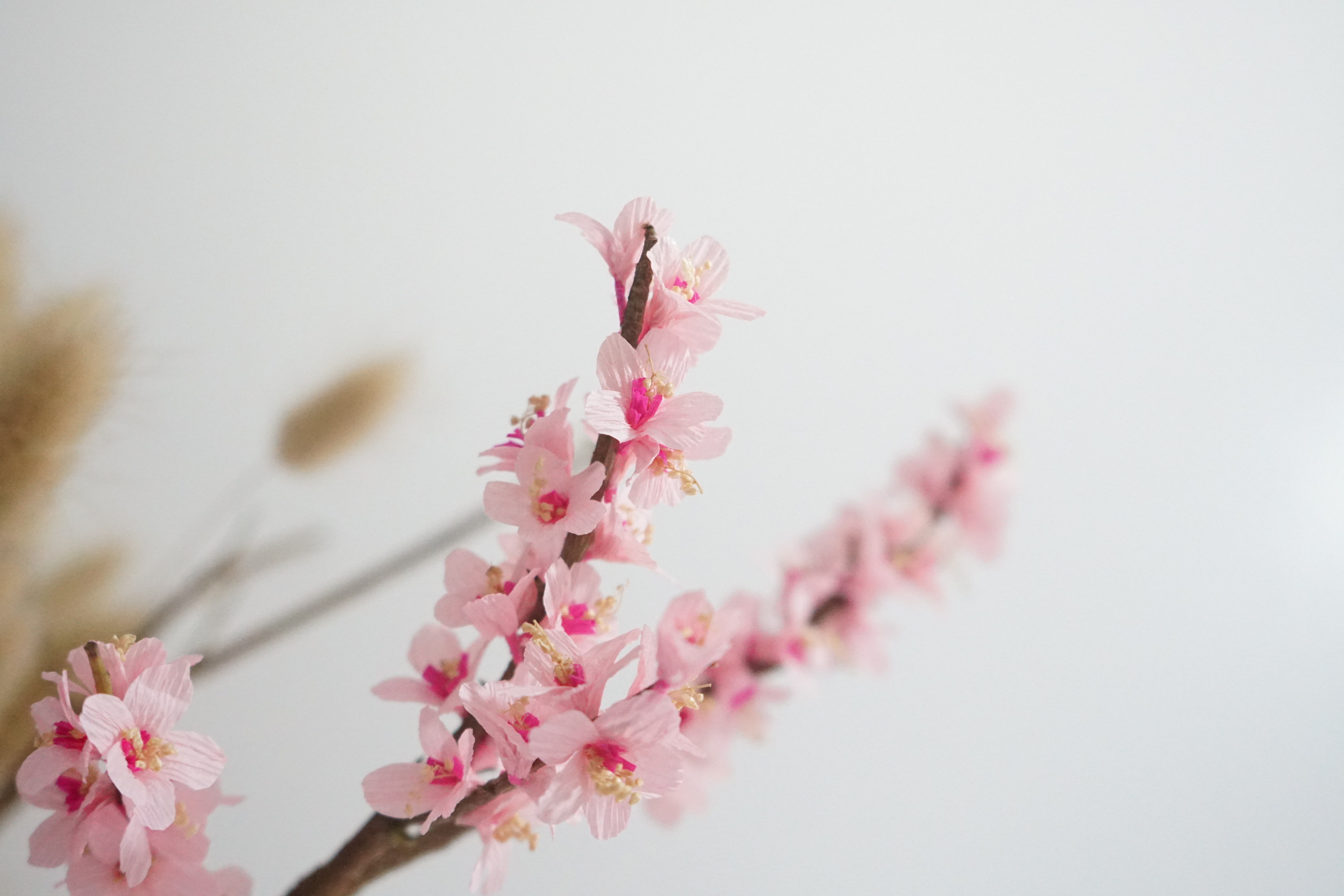 The crepe paper that I used was a little bit thicker than the ones you can buy at school supplies. I think the texture is also perfect for the project. However, I’ve been looking for a nice branch of a tree where I live but couldn’t find one. So I just settled with the one I got.
